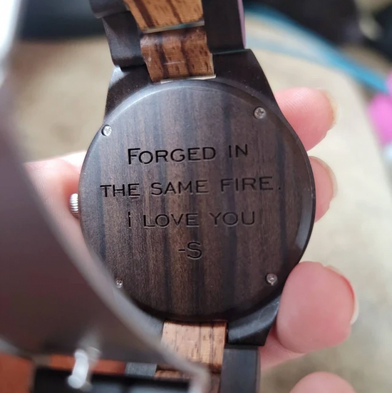 Made from high-quality wood and genuine Japanese quartz movement, this personalized wood watch is sure to bring a smile to the special someone and remind them of your love for years to come.