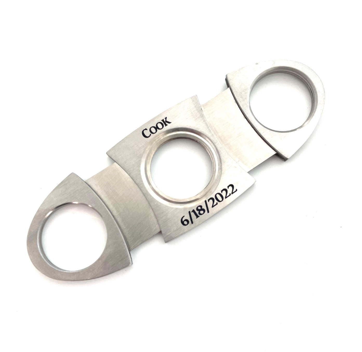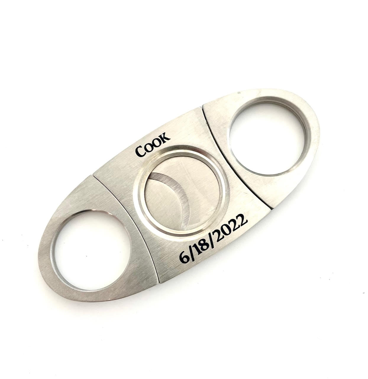 Your custom cigar cutter can be engraved with a date and name of your choice.